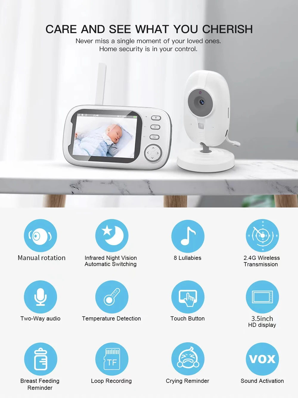 Keep your little one safe and sound with our Wireless Video Baby Monitor! 👶💖 This all-in-one monitoring system is designed to give you peace of mind while staying connected with your baby from anywhere in your home.